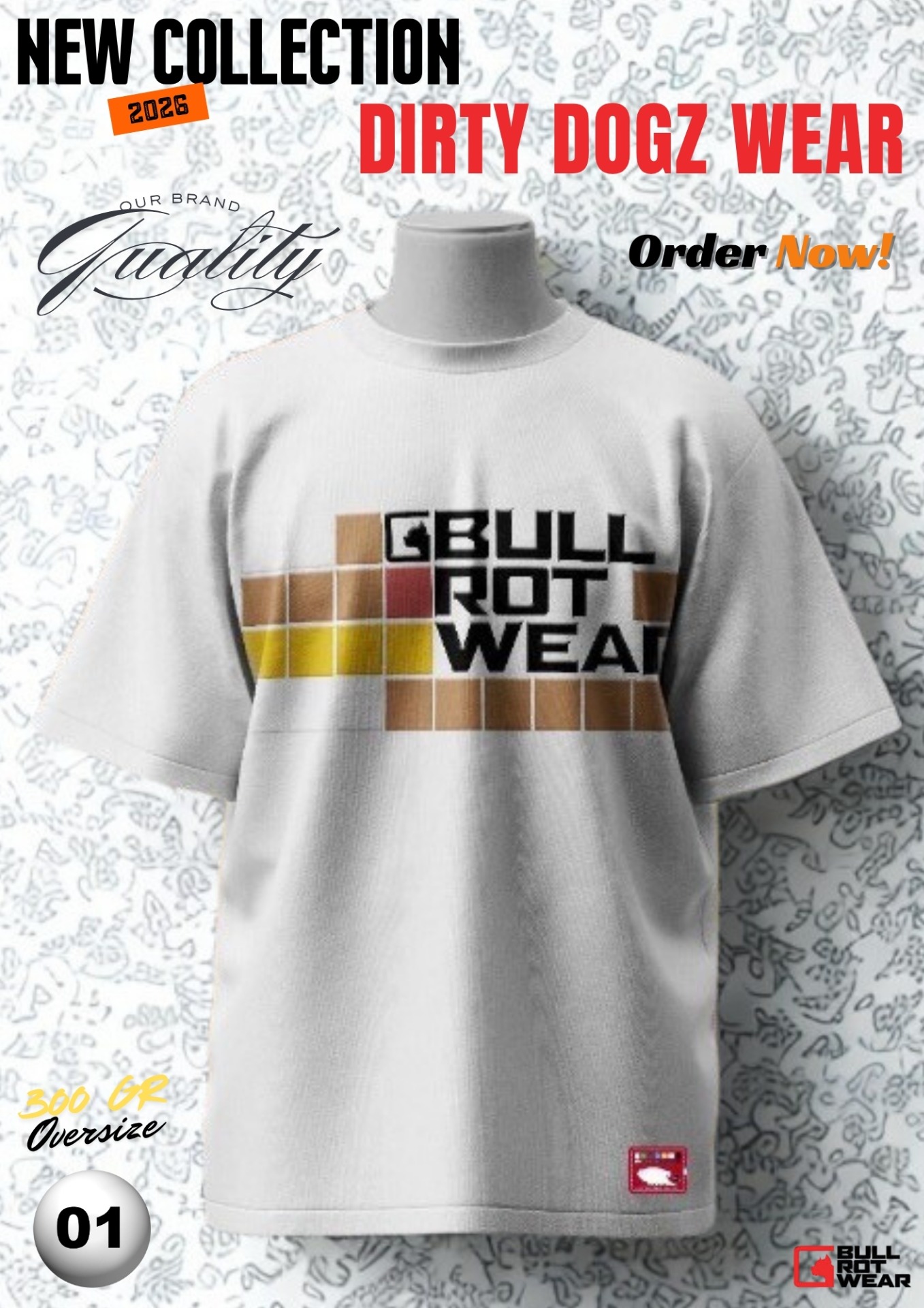 Pour inaugurer cette nouvelle collection 2026 de la marque emblématique « Bullrot Wear », nous avons choisi un modèle unique et inédit au sein d'une toute nouvelle production de T-shirts et de sweats d'une qualité exceptionnelle ! Découvrez le numéro 001 de la collection 2026 BWR Dirty Dogz - T-Shirt Oversize Couleur : Blanc/White (Nouveau logo concept BWR 2026) Pré-commande disponible : Aout 2026