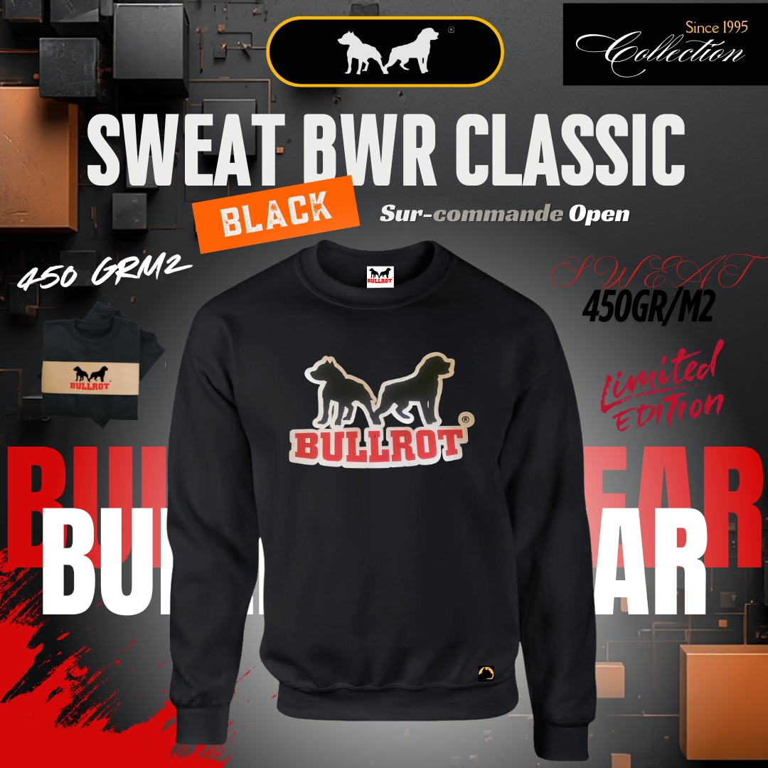 Sweat col rond " Bullrot Wear " BWR Classic / Limited édition Black Noir 450Grm2