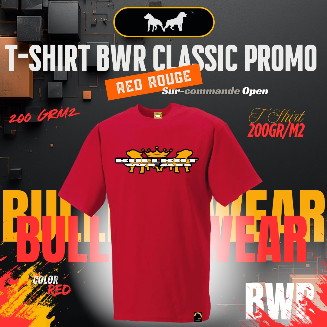 T-Shirt Classic " Bullrot Wear " Red /Rouge Promo 200Grm2
